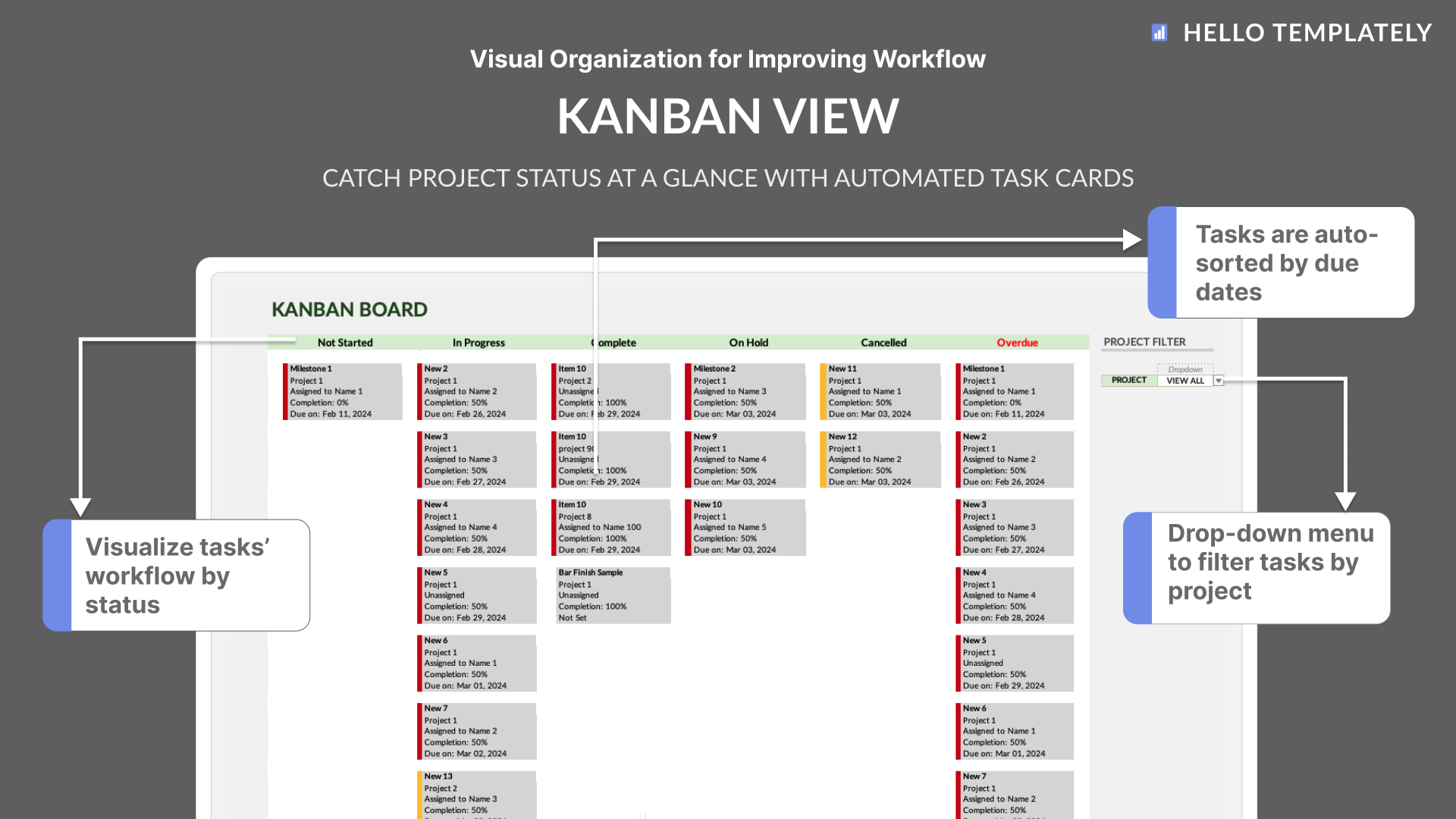 Our project management template in Google Sheets and Excel offers a comprehensive solution for organizing, tracking and completing your projects efficiently.